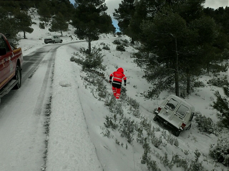 También en el acceso al entorno de Narváez, los bomberos han encontrado una furgoneta que al parecer ha sufrido una salida de vía, colisionando con un árbol además de varios vehículos abandonados ante la imposibilidad de continuar circulando.