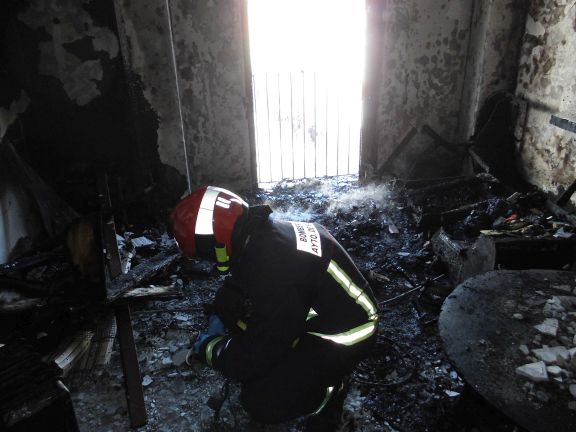 El Servicio contra incendios del Ayuntamiento de Baza ha movilizado tres bomberos y dos camiones, la Bomba Urbana y la Escala, para la extinción de este incendio cuyas llamas eran visibles desde la fachada. El incendio estaba localizado en el salón del domicilio, dependencia que ha quedado totalmente calcinada y, el resto de la vivienda gravemente afectada por el humo de la combustión.