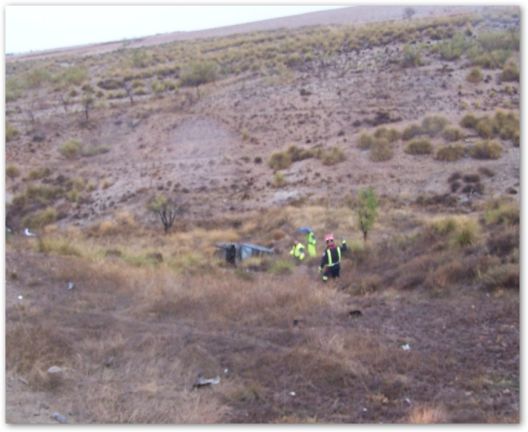 A las 08:15 horas, una dotación de bomberos se dirigía al kilómetro 64 de la A-92N para intervenir en un accidente de tráfico con un sólo vehículo implicado que circulaba sentido Granada cuyo conductor ha sido trasladado al Hospital General Básico de Baza con pronóstico leve. Mientras se actuaba en este incidente, el 112 Andalucía ha informado de otro accidente, justo un kilómetro antes en el mismo sentido, donde el turismo se había precipitado por un desnivel de unos 6 metros. Sus ocupantes que no resultaron atrapados, fueron inmediatamente evacuados al Hospital de Baza.