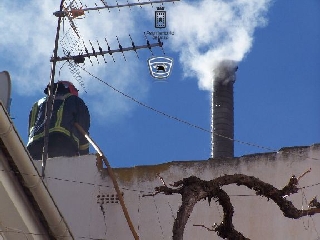 Los bomberos han accedido al tejado de la casa para extinguir el cañón, posteriormente han supervisado el estado del interior de la vivienda, en aquellas habitaciones por las que pasaba la instalación de la chimenea, donde han descubierto la existencia de humo en el baño. Dado que las vigas del forjado son de madera, ha sido necesaria romper una zona del techo para descartar la existencia de fuego en la estructura.