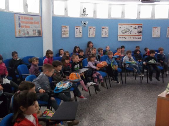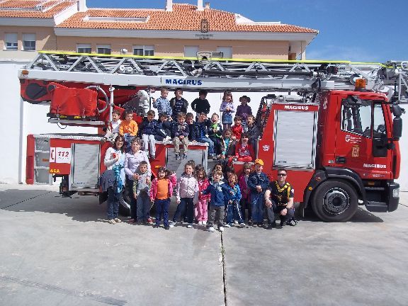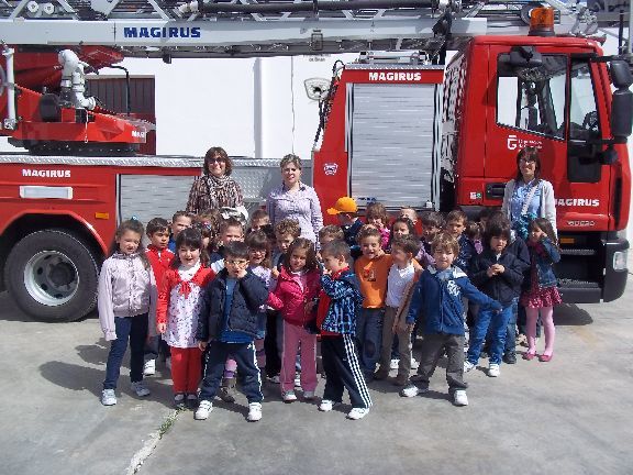 Una treintena de alumnos y alumnas de tan sólo cuatro añitos han cambiado esta mañana su aula habitual en el Colegio Juan XXIII de Caniles por el Aula de Formación del Parque de Bomberos.