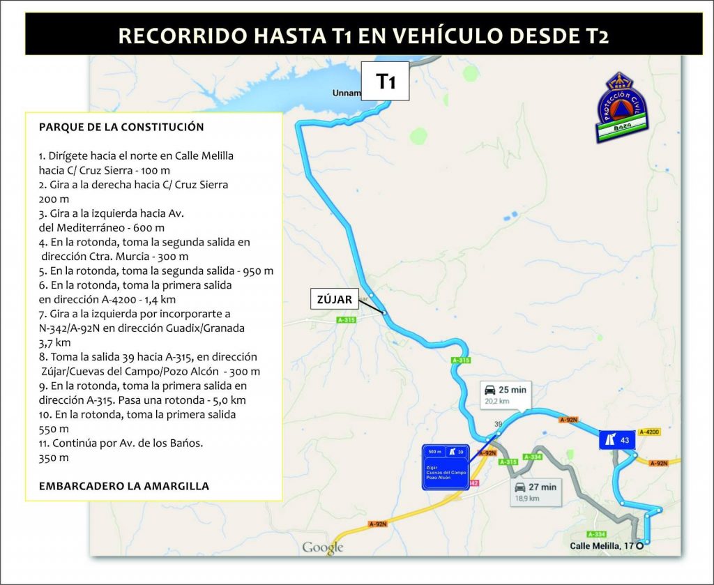 Recorrido desde el Pabellón de Deporte donde se recogen los dorsales hasta la T1.