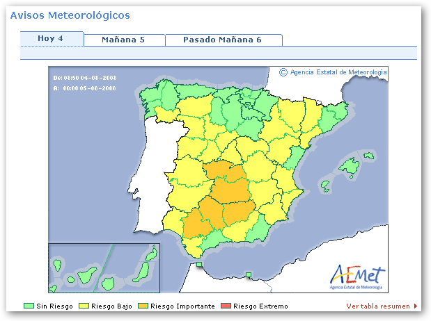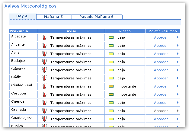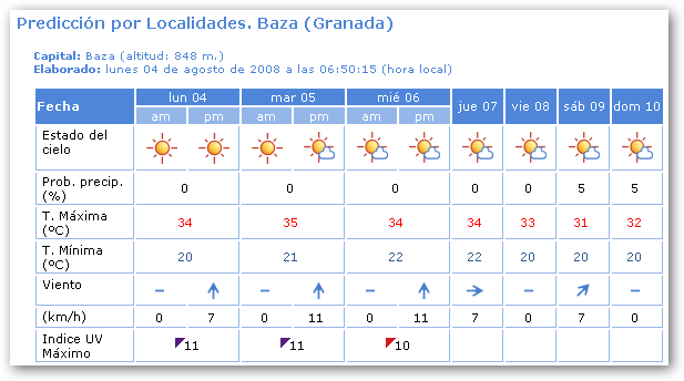 «Cielos poco nubosos o despejados, salvo nubosidad de evolución en las sierras más orientales. Temperaturas sin cambios o en ligero ascenso. Vientos de componente Este flojos a moderados, tendiendo por el día a componente sur en el interior.