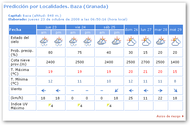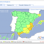 Cielos muy nubosos con chubascos moderados, localmente fuertes y acompañados de tormentas. Temperaturas mínimas sin cambios o en ligero descenso; máximas en ligero ascenso. Vientos de componente Este, fuertes en el litoral; y moderados en el interior.