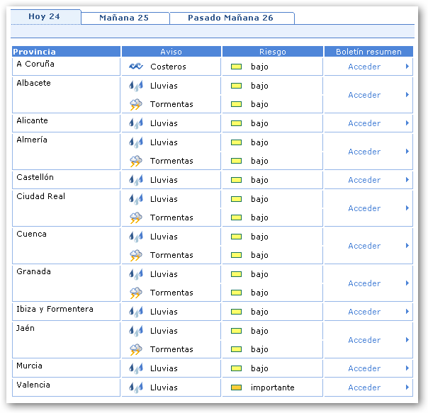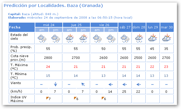 «Nuboso a muy nuboso en el interior con chubascos débiles a moderados, ocasionalmente acompañados de tormentas, que en el extremo oriental podrían ser localmente fuertes durante la tarde; intervalos de cielos nubosos en el litoral. Temperaturas sin cambios. Vientos flojos variables en el interior, con pedominio de la componente Oeste; de componente Oeste en el litoral flojos a moderados.