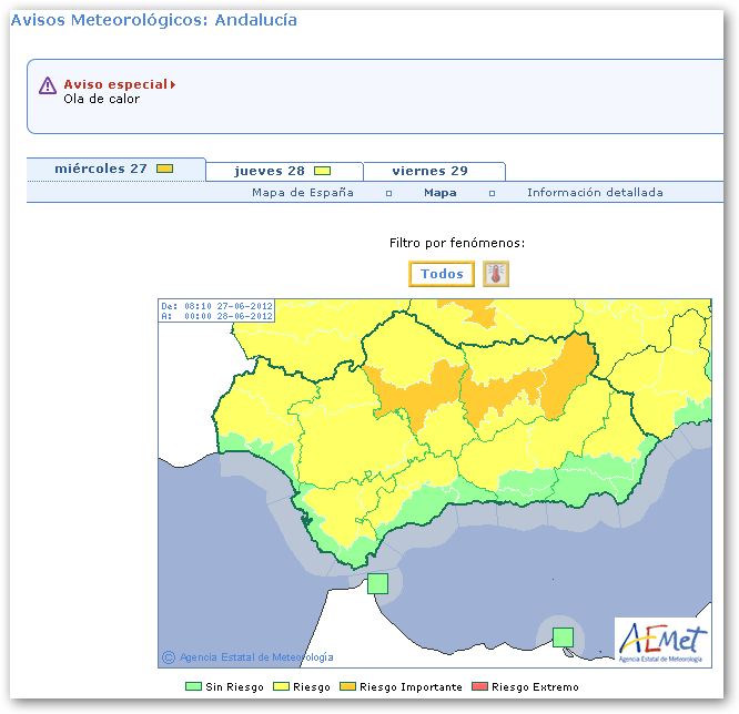 Duración: desde las diez de la mañana hasta las siete de la tarde del miercoles 27 de junio; volviéndose a activar en la jornada de mañana juves 28 de junio durante el mismo horario.