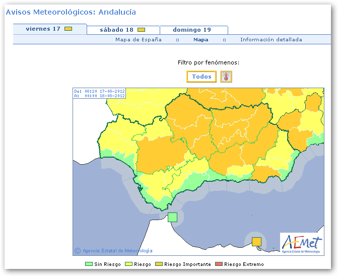 La Agencia Estatal de Meteorología ha decretado el Nivel de Alerta Naranja para la jornada de hoy viernes y Nivel Amarillo para mañana sábado por altas temperaturas en Guadix y Baza, con temperaturas máximas que pueden alcanzar los 41ºC.