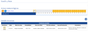 La AEMET informa que mantendrá activado el nivel de alerta naranja por viento en ámbito geográfico de Guadix y Baza por rachas de viento que pueden alcanzar los 90km/h. desde las 00’00h. hasta las 24’00h. de hoy miércoles 28 de enero.