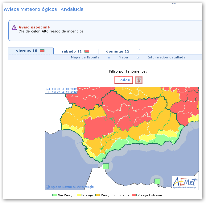 La Agencia Estatal de Meteorología ha decretado el Nivel de Alerta Naranja para las jornadas de hoy viernes y mañana sábado por altas temperaturas en la Cuenca del Genil, Guadix y Baza, con temperaturas máximas que pueden alcanzar los 43ºC.
