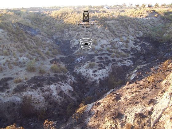 El primero incendio se registró a las cinco y media de la tarde en un solar junto a la calle Pintor Miguel Ángel de Baza, cerca de la Plaza de Toros, en el que ardieron 10 m2 de rastrojos y tocones. En estos mismos solares, se produjo un incendio el pasado domingo al medio día, donde se quemaron unos 1.500 m2. Policía Local de Baza ha presenciado ambos incidentes para iniciar sus correspondientes investigaciones.