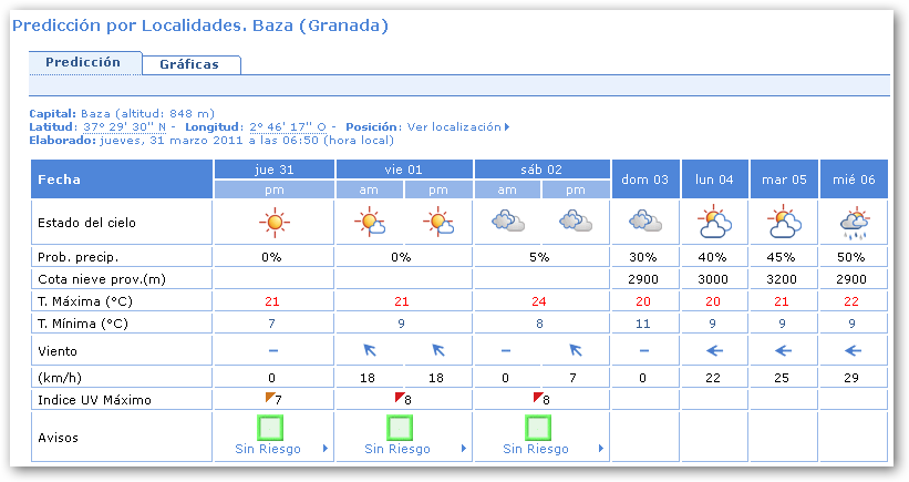 Comentarios desactivados en Predicción Meteorológica según AEMET, 31/03/11