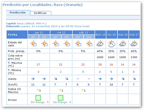 Previsión Meteorológica AEMET, 10/11/2010
