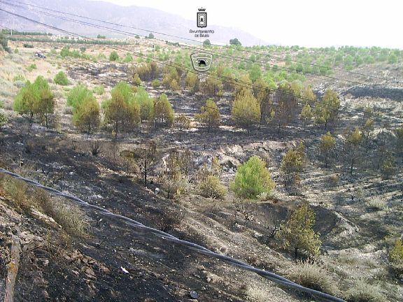 El Servicio Contra Incendios, Salvamento y Protección Civil del Ayuntamiento de Baza participó ayer en la extinción de un incendio que arrasó alrededor de tres hectáreas de pinar y monte bajo en el término municipal de Cúllar, en una zona poblada conocida como El Margen y en concreto Barrio Nuevo.