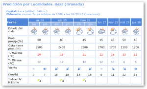 Datos obtenidos de la estación meteorológica del Parque de Bomberos de Baza: