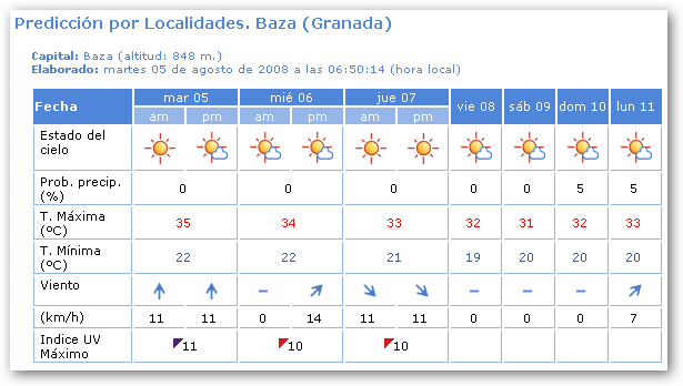 Datos obtenidos de la estación meteorológica del Parque de Bomberos de Baza: