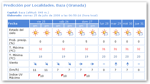 Datos obtenidos de la estación meteorológica del Parque de Bomberos de Baza: