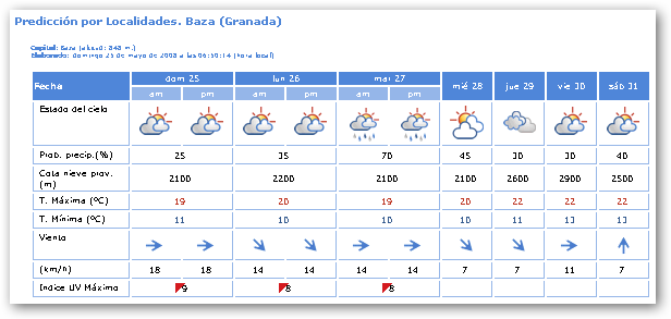Datos facilitados por la estación meteorológica situada en el Parque de Bomberos de Baza:
