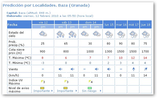 Precipitaciones a partir del mediodía débiles a moderadas, siendo menos probables hacia el extremo nororiental. Cota de nieve en descenso hasta los 600-800m. Heladas débiles a moderadas en el interior. Temperaturas en ligero descenso. Vientos flojos de