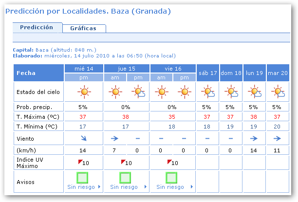 Temperatura máxima prevista: 37 ºC