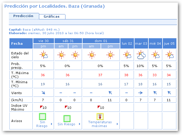 Temperatura máxima prevista: 36ºC