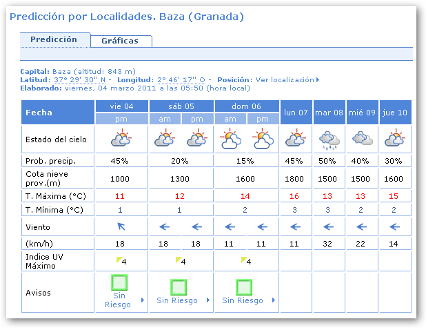 Cielos nubosos o muy nubosos, con precipitaciones débiles o localmente moderadas, más probables e intensas hacia el extremo nororiental de nieve por encima de los 900-1000 m.