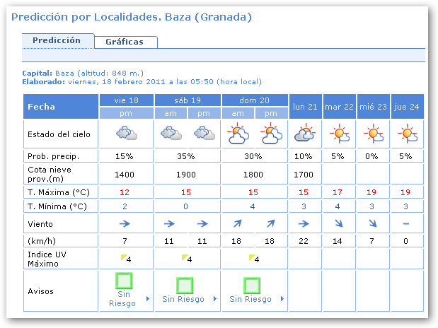 Temperaturas diurnas en ligero a moderado ascenso. Vientos de componente oeste, flojos a moderados en el interior, con rachas fuertes a primeras horas en las sierras más orientales, y fuertes en el litoral disminuyendo a flojos a moderados por la tarde.