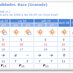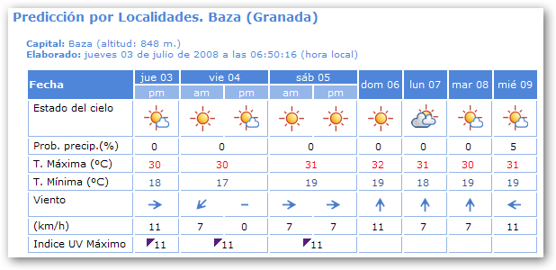 «Poco nuboso o despejado. Temperatura en ligero a moderado descenso. Vientos de componente Oeste, flojos a moderados en el interior, y moderados con intervalos fuertes en el litoral.