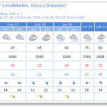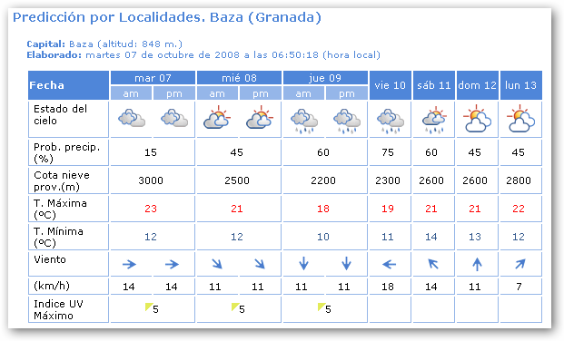 «Cielos poco nubosos aumentando por el día a nubosos, o muy nubosos con precipitaciones débiles y dispersas. Temperaturas sin cambios. Vientos variables flojos girando por el día a componente Oeste.