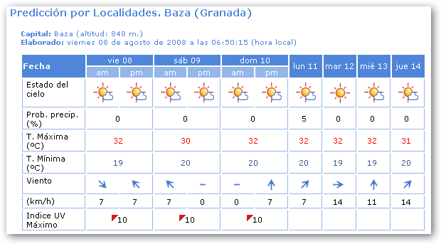 «Cielos poco nubosos o despejados. Temperaturas sin cambios o en ligero descenso en el interior. Vientos variables flojos con predominio de la componente oeste.