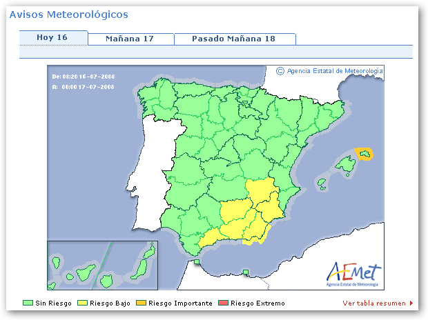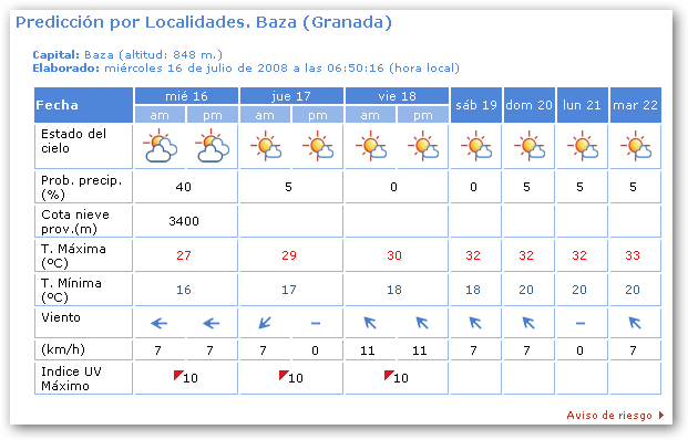 «Intervalos nubosos aumentando a nubosos en el interior con chubascos, débiles a moderados, ocasionalmente acompañados de tormenta y que pueden ser localmente fuertes durante la tarde. Temperaturas sin cambios en el litoral y en ligero ascenso en el interior. Vientos de componente Este flojos, alternando con brisas en el litoral.