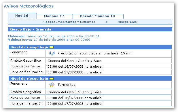 Actualización: Nivel Amarillo en precipitaciones y tormentas para la Cuenca del Genil, Guadix y Baza.
