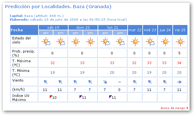 «Cielos poco nubosos con intervalos nubosos de nubes altas, y nubosidad de evolución en las sierras del este donde hay posibilidad de chubascos dispersos.Temperaturas en ligero ascenso en el interior sin cambios en el litoral. Vientos flojos en el interior y de componente Este de flojos a moderados en el litoral.