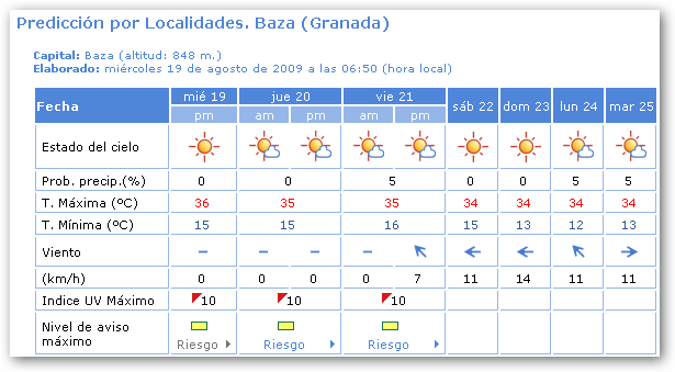 Cielos poco nubosos o despejados. Brumas matinales costeras. Temperaturas sin cambios. Vientos flojos, de componente sur en el interior, y de componente este en el litoral.