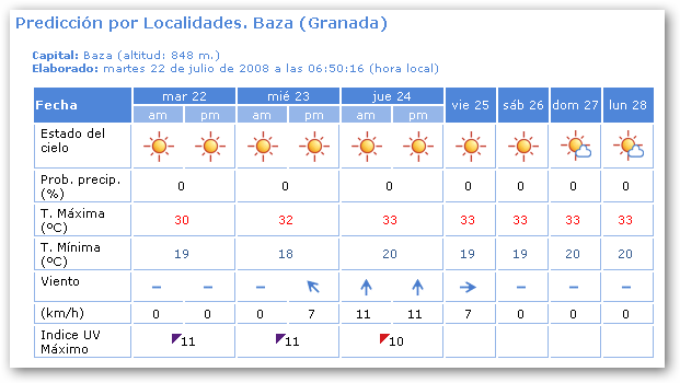 «Intervalos nubosos en las comarcas orientales tendiendo por el día a poco nubosos; cielos poco nubosos o despejados en el resto. Brumas matinales costeras. Temperaturas nosturnas sin cambios o en ligero ascenso; diurnas en ligero descenso. Vientos variables flojos en el Interior; de componente Este, flojos a moderados, en el litoral.