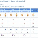 «Poco nuboso o despejado salvo intervalos nubosos matinales en puntos del interior. Brumas y posibles bancos de niebla matinales costeros. Temperaturas en ligero descenso. Vientos flojos variables en el interior; de componente Oeste flojos a moderados en el litoral, disminuyendo y girando a componente Este flojos al final.
