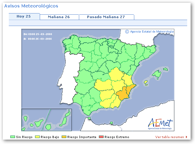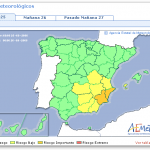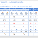 Desde las 09’00h del 25/09/2008 hasta las 00’00h del 27/09/2008, la zona de Almería, Granada, (Cuenca del Genil, Guadix y Baza, Nevada y Alpujarras); Jaén.
