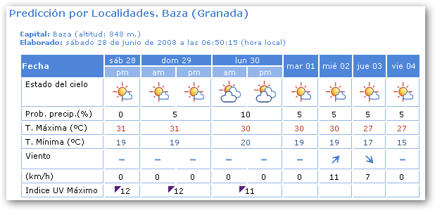 La predicción para la provincia de Granada es: