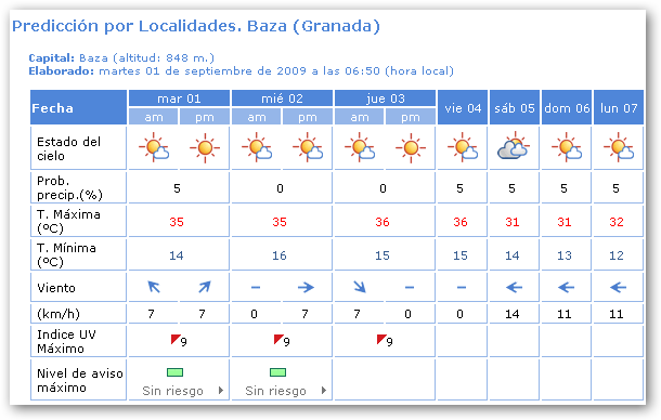 Poco nuboso con intervalos nubosos matinales en el litoral y nubosidad de evolución durante la tarde en las sierras orientales. Posibilidad de algún chubasco aislado en las sierras del Nordeste. Brumas matinales costeras. Temperaturas diurnas sin cambios o en ligero descenso. Vientos flojos variables en el interior, con predominio de la componente Oeste, y de componente Oeste flojos en el litoral.