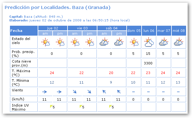 Cielos con intervalos nubosos, con predominio de nubes medias y altas. Temperaturas mínimas sin cambios, y máximas en ligero ascenso. Vientos de componente Oeste, flojos en el interior y flojos a moderados en el litoral.