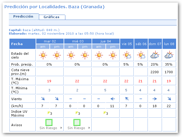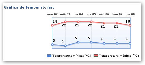 Poco nuboso o despejado. Temperaturas mínimas sin cambios o en ligero descenso y máximas en ligero a moderado ascenso. Vientos de componente Norte flojos a moderados, con rachas fuertes al principio en cotas altas del interior oriental, tendiendo durante el día a variables flojos en el litoral.