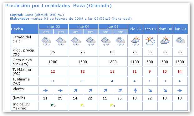 Cielos nubosos en el interior con posibilidad de precipitaciones débiles y dispersas a primeras horas, de nieve en cotas superores a 1000-1200mts aumentando durante la tarde a muy nuboso con posibilidad de precipitaciones débiles hacia las comarcas occidentales. Brumas en el interior. Temperaturas nocturnas en ligero a moderado descenso; diurnas sin cambios o en ligero ascenso. Vientos de componente Oeste; flojos en el interior aumentando a moderados hacia el final del día, y moderados en el litoral con intervalos fuertes.