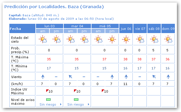 Cielos poco nubosos con intervalos nubosos de nubes altas, e intervalos nubosos matinales de nubes bajas en el litoral. Brumas y posibilidad de nieblas matinales costeras. Temperaturas sin cambios o en ligero ascenso. Vientos flojos; de componente oeste en el interior, variables en el litoral con régimen de brisas.