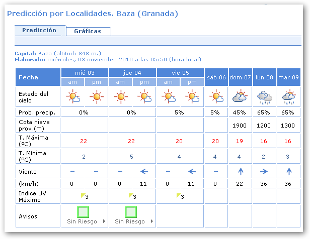 Poco nuboso o despejado. Temperaturas mínimas sin cambios o en ligero descenso, máximas en ligero a moderado ascenso. Vientos de componente Este flojos, excepto en el tercio oriental con predominio de la componente Norte tendiendo por la tarde a variables en el interior; flojos de componente Este en el litoral.