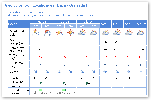 Intervalos nubosos, más abundantes en el interior, tendiendo a poco nuboso durante la tarde. Precipitaciones débiles o localmente moderadas durante el día, menos probables hacia el Este. La cota de nieve bajará hasta los 1500-1700 metros. Temperaturas en ligero a moderado descenso. Vientos de componente Oeste, moderados en el interior con intervalos fuertes en zonas altas, tendiendo a flojos al final, y moderados a fuertes en el litoral.