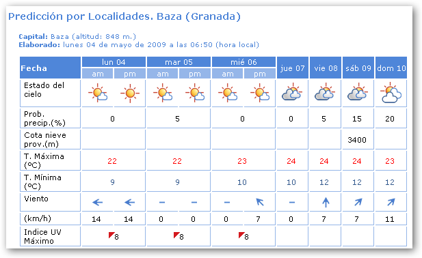 Cielos poco nubosos con intervalos de nubes medias y altas. Temperaturas sin cambios. Vientos de componente este; flojos en el interior y flojos a moderados en el litoral.