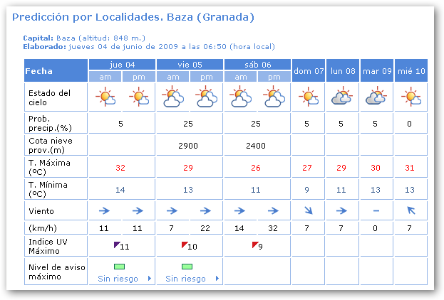 Cielos poco nubosos o despejados aumentando por la tarde a intervalos nubosos de nubes altas. Temperaturas nocturnas sin cambios o en ligero descenso; diurnas en ligero descenso. Vientos variables flojos en el interior tendiendo a componente oeste, flojos a moderados; de componente oeste, flojos a moderados, en el litoral aumentando, a moderados con intervalos fuertes.