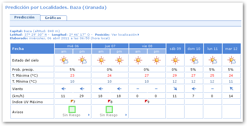 Poco nuboso con intervalos de nubes medias y altas. Temperaturas sin cambios o en ligero ascenso. Vientos de componente Este, moderados en el interior con intervalos de fuertes en cotas altas, y fuertes con intervalos de muy fuertes en el litoral.