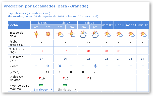 Temperatura máxima prevista: 36ºC.