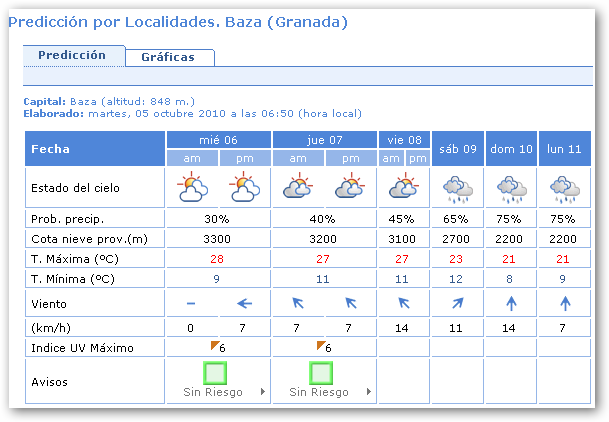 Cielos nubosos o despejados, con algunos intervalos nubosos en el litoral a partir de la tarde. Temperaturas en ligero a moderado ascenso. Vientos flojos, de dirección variale en el interior y en régimen de brisas en el litoral.