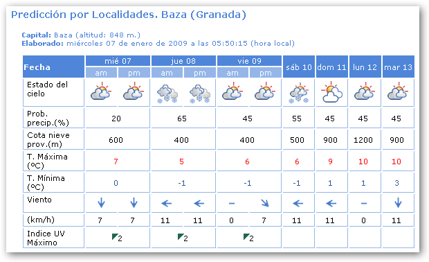 Cielos nubosos en el tercio oriental y franja litoral con precipitaciones débiles a moderadas más probables por la tarde en el sur. La cota de nieve se situará a unos 400-600 mts. Temperaturas en moderado descenso, con heladas débiles en el interior. Vientos del Norte, flojos a moderados, en el interior; noreste flojo a moderado en el litoral.